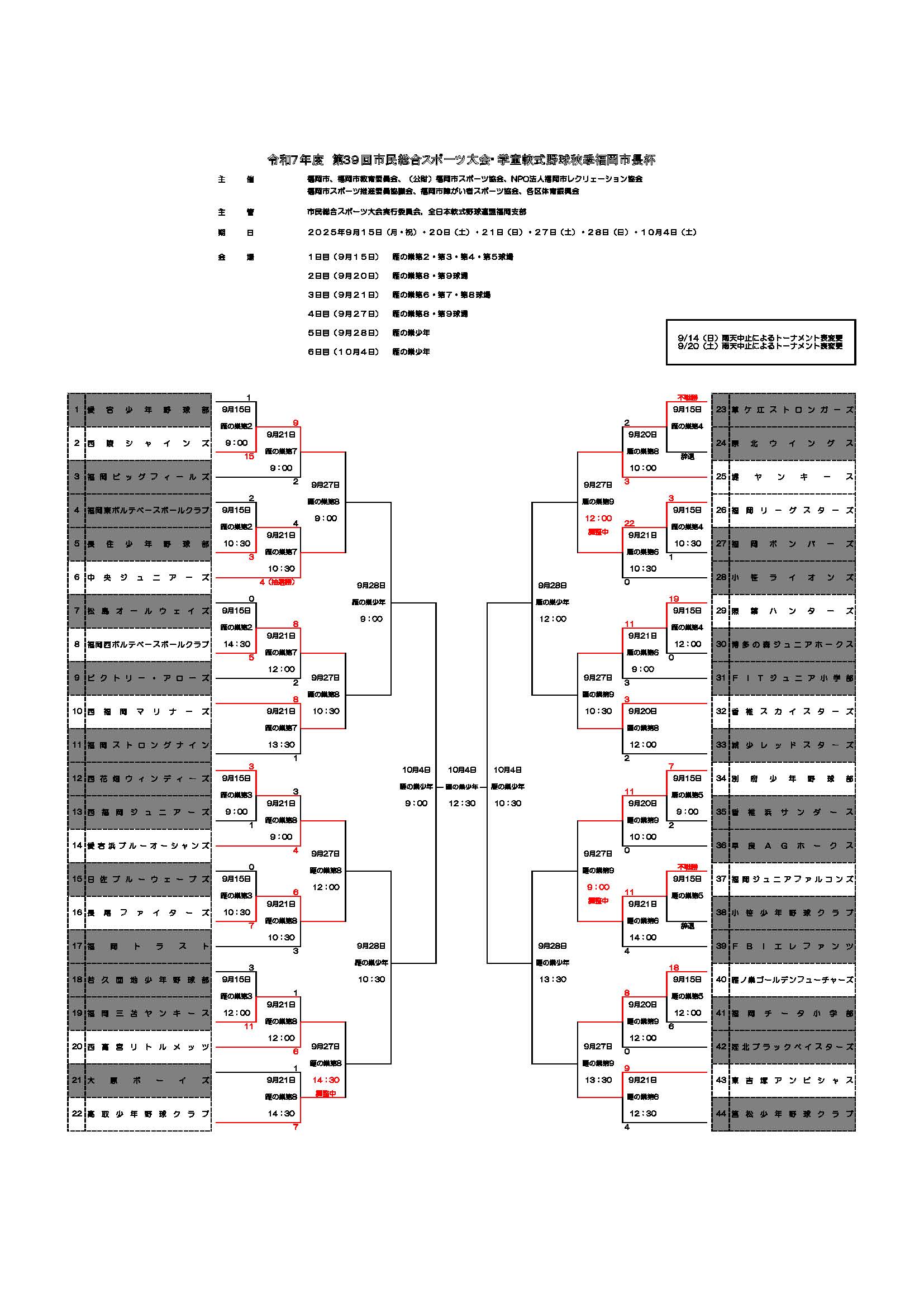 令和7年度第39回市民総合スポーツ大会・学童軟式野球秋季福岡市長杯 2025.9.21~ トーナメント表(2回戦終了時)