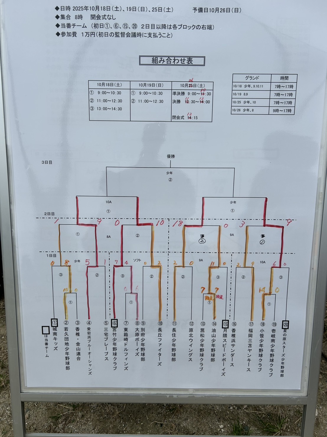 福岡県少年軟式野球大会(第40回記念県大会)2025.10.11~ トーナメント表